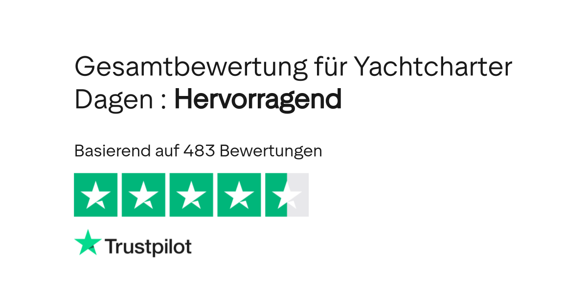 Lesen Sie was 436 Kunden geschrieben haben und teilen Sie Ihre eigenen Erfahrungen. 25 Jahre Erfahrung im Bereich Yachtcharter. Seit 4 Jahren buche ich nun schon regelmäßig 1-2 Mal im Jahr über Yachtcharter Dagen.