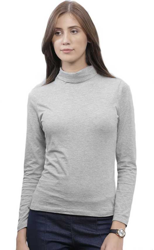 Ether Solid Women Turtle Neck Grey T Shirt Buy Ether Solid Women Turtle Neck Grey T Shirt Online At Best Prices In India Flipkart Com